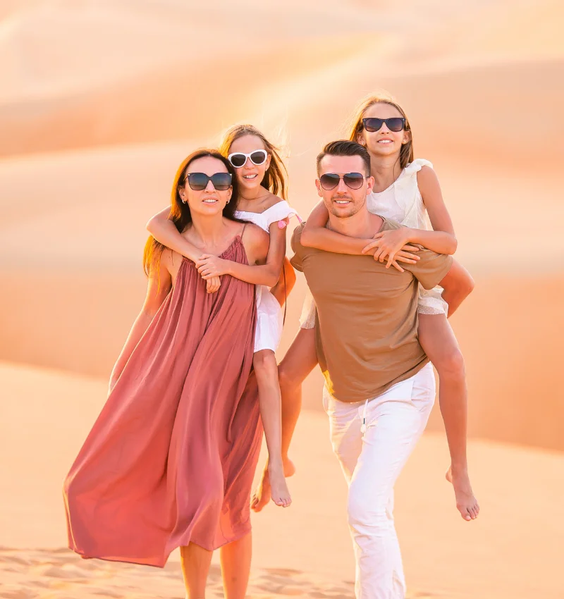 Start your day early with a beautiful hot air balloon ride over the desert, where you can enjoy stunning sunrise views and see the golden sand dunes from above. Later in the afternoon, head out for an exciting desert safari in Dubai. Enjoy thrilling dune bashing and a relaxing camel ride across the desert.